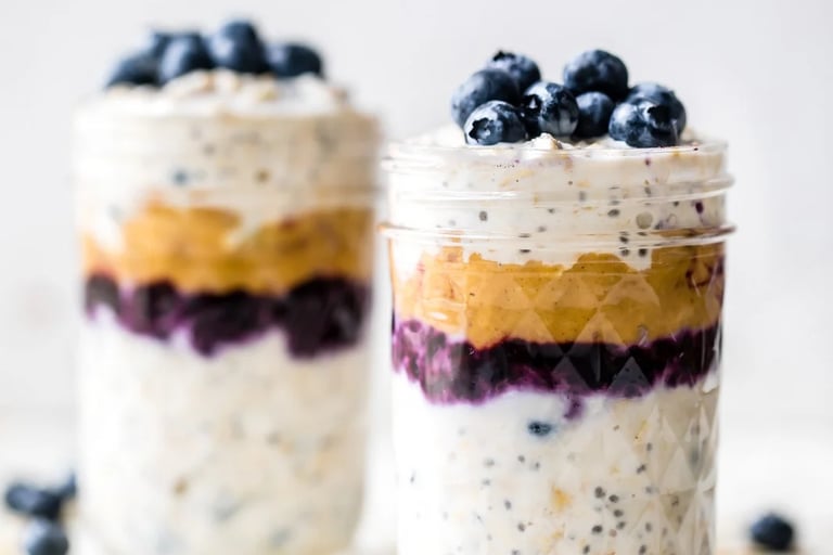 Mix oats, full-fat milk, chia seeds, honey and blueberries in a bowl